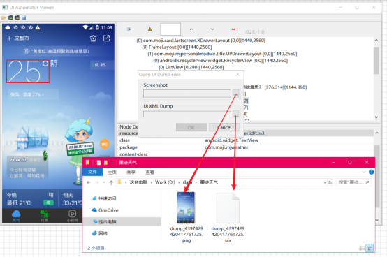 6、 在实际使用过程中,可以将页面截图保存下来,以后在写自动化脚本的时候,不用每次都连接设备打开 App,可以直接打开保存的截图,方便快捷。保存后有两个文件,屏幕截图和 xml 格式的屏幕层级关系(uix文件);