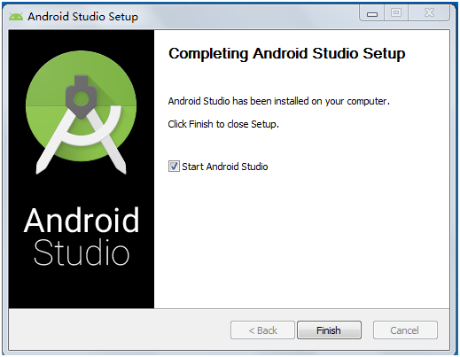 3、 这里Android studio程序安装完毕,但是还需要继续对其进行配置;勾选Start Android Studio,然后点击finish启动AS,出现下图;