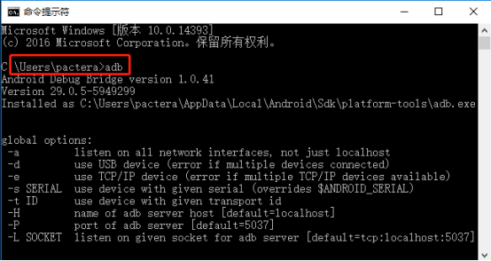 5、 在命令行输入“adb”;
