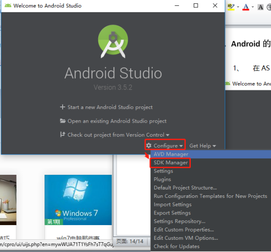 1、 在AS的欢迎界面,点击Configure---》SDK Manager,进入Setting for New Projects界面;