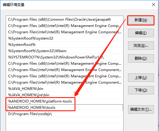 4、 在PATH变量中新建:【%ANDROID_HOME%\platform-tools】和【%ANDROID_HOME%\tools】;