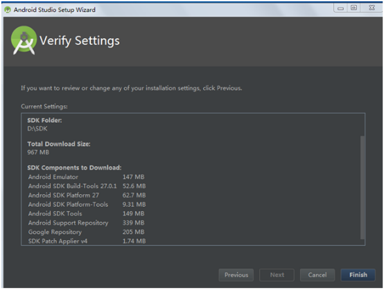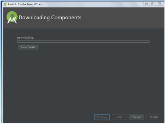 8、 下载完成SDK后,点击Finish进入AS的欢迎界面;