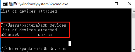 3、 保证设备已经连接,通过【adb devices】命令查看;