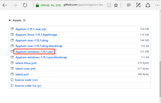 2、 点击Download Appium,进入1.15版本,选择【Appium-windows-1.15.1.exe】进行下载;