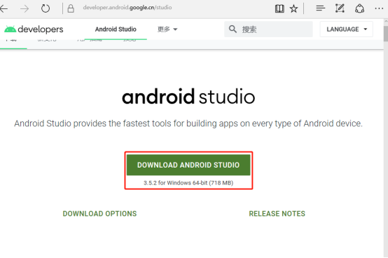(1)、Android的studio下载地址 :https://developer.android.google.cn/studio,对应的安装包【android-studio-ide-191.5977832-windows.exe】;