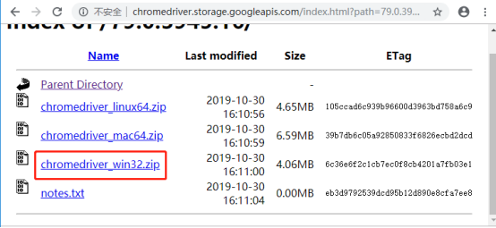 4、 对应Chrome浏览器版本的Chromedriver下载地址:http://chromedriver.storage.googleapis.com/index.html;