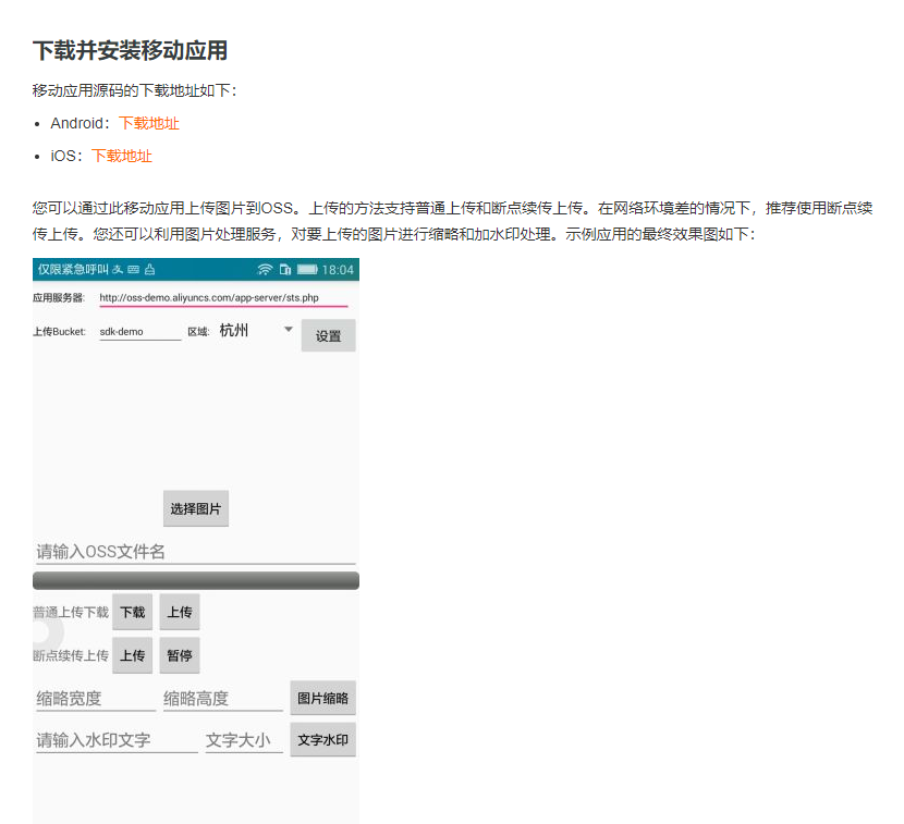 由于项目前端是安卓,上传下载的功能由安卓端操作,那么我就要研究下安卓那边怎么做了,后台需要做哪些操作,翻看了下阿里云的文档,