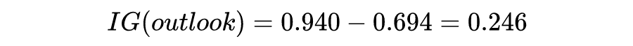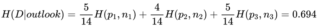 那么 outlook 的信息增益表示为: