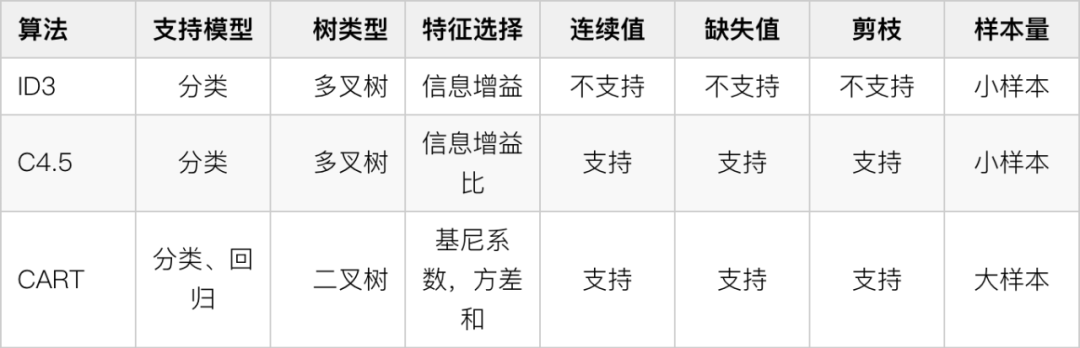 在样本量比较小的情况下建议使用 C4.5,大样本的情况下使用 CART。C4.5 需要对数据进行多次排序,处理成本耗时较高;CART 树是一种大样本的统计方法,小样本处理下泛化误差较大。