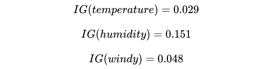 3)计算信息增益 IG: