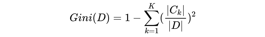 那么分类数据集 D 的基尼系数可以表示为: