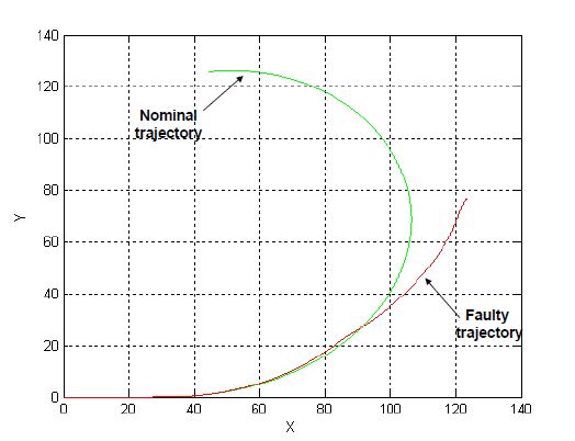 图4表示为该文的丢包引起弯道外冲的仿真结果,图中的单位为m(the axis reports the car’s position expressed in meters).