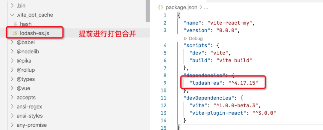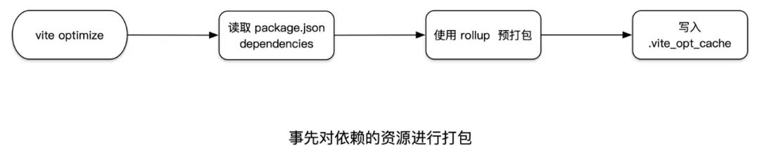 在 Vite 的启动流程中有一个 vite optimize 的过程会自动将 package.json 中的 depenencies 借助 Rollup 打包成 ES6 Module。