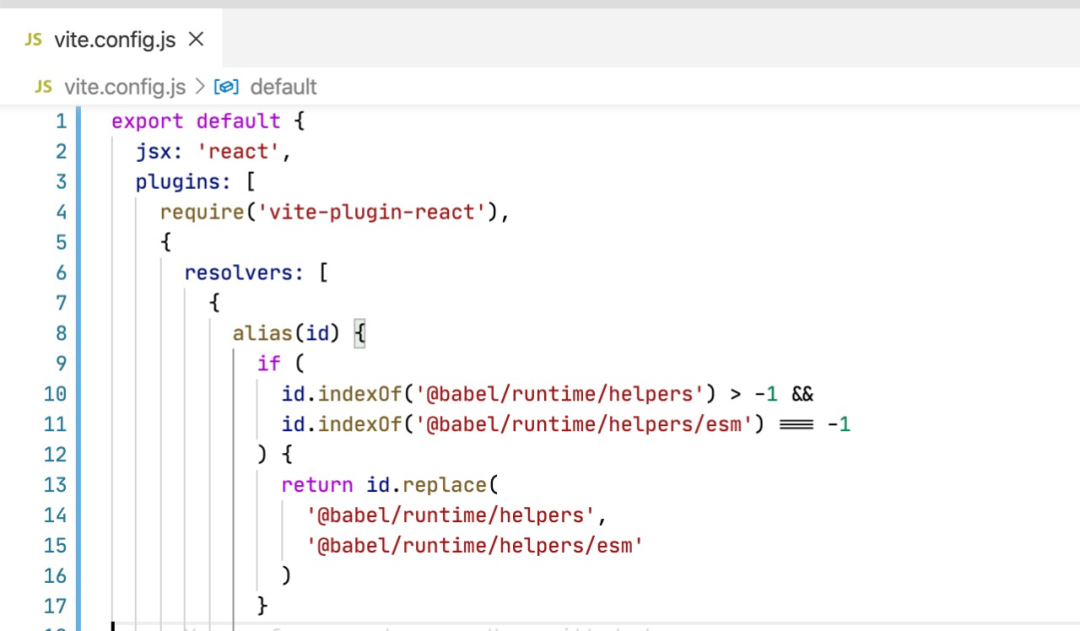 Vite 在运行的过程中会依据文件不同的后缀名进行对应的编译处理,而在 Webpack 模式下我们通常会将 JSX、JS 等文件都丢给 babel-loader 进行处理,这使得有一些原本是 JSX 的文件没有写 JSX 后缀。Vite 只会对