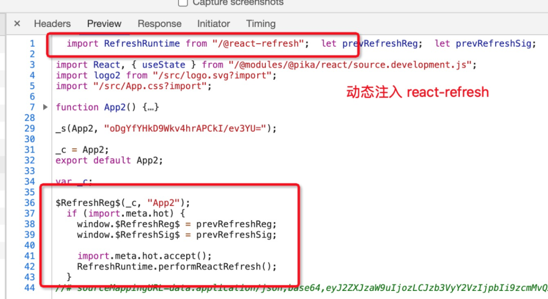HotModuleReplace 能够在我们修改代码后,不需要刷新页面,直接在当前场景下生效,结合 Bundleless 极快的生效速度,我们能够实现几乎没有延迟的保存即生效的体验。对于 React,在 Webpack 场景下目前只能通过使用 react-hot-loader 来实现,但这一块受限于具体的实现,有一些场景会存在 bug,作者也建议迁移到 React 团队实现的 react-refresh,而这一块在 Webpack 中还没有相应的实现。在 Bundleless 场景下,因为我们的每个组件都是独立加载的,所以要集成 react-refresh,我们只需要在浏览器请求返回时在文件的顶部和底部加上相应的脚本即可完成集成。