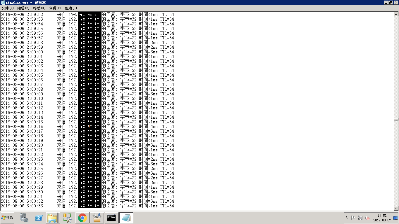 我通过长ping生成日志,发现在3点左右网络是正常的,没有出现丢包现象。