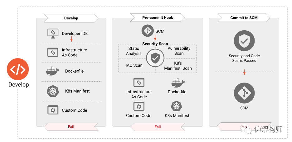 对云原生应用来说,建议在应用生命周期的早期就引入安全保障。尽早地使用安全测试来识别合规和配置的相关问题,从而为持续改进提供快速、可操作的反馈流程。这种方式能够使用同样的工作流程来处理安全问题和 Pipeline 中的其它常规问题(例如 Bug 修复或者 CI 失败)。这种模型中使用的现代的安全方法符合设计模式(例如 12 要素)要求,并且能保障交付过程的完整性。云原生的概念和 IaC(基础设施即代码)的实践密不可分,以此确保能够在早期进行安全检查后,按照预期执行。这样的过程能够识别错误配置,并可以尽早在 IaC 和编排清单中实施最佳实践,从而降低长期成本并提高安全价值。