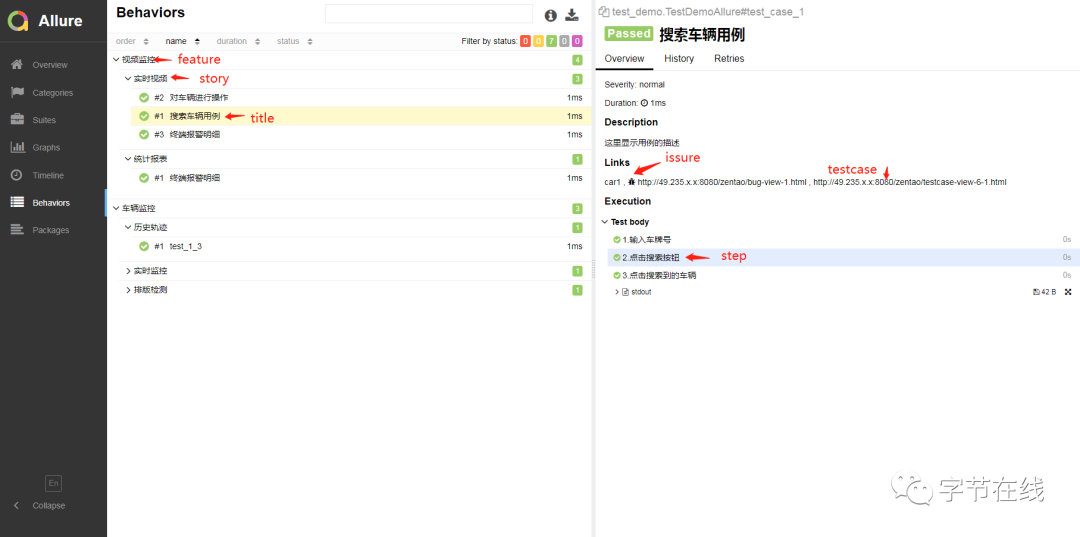 @allure.story :用于定义被测功能的用户场景,即子功能点