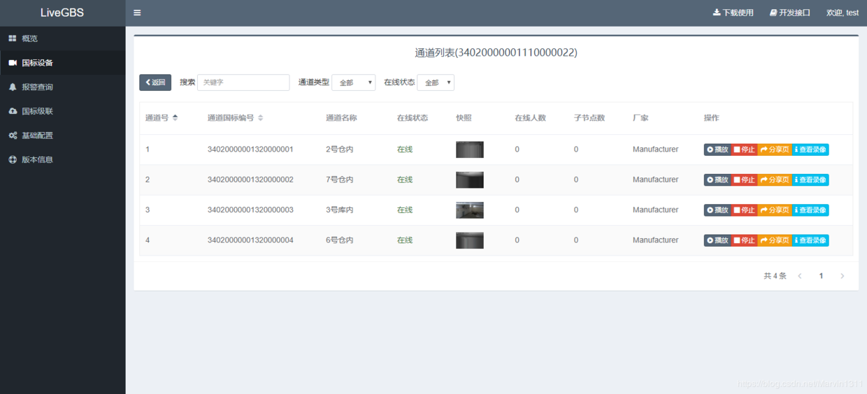 在安防监控行业中GB28181协议可以实现获取直播流、录像、报警信息、通道状态等各种信息,基本满足了监控行业中的全部需求。LiveGBS就是一套开放的GB28181流媒体服务平台,提供用户私有化部署、提供标准RESTFul HTTP接口用于二次开发,将视频流转成RTMP、RTSP、HTTP-FLV、HLS格式支持WEB端、移动端等各终端播放,无需插件。另外还支持抓取快照、云端录像、级联、报警信息、权限管理等更多细节功能,是个非常优秀的GB28181流媒体服务平台。