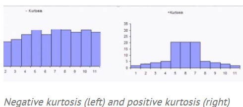 A normal distribution has no skew. Basically, it’s a centered and symmetrical in shape. Kurtosis refers to how much of the data is in the tails and the center. The skewness and kurtosis for a normal distribution is about 1.