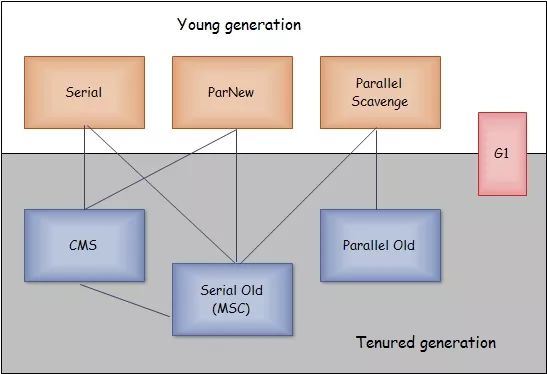 下面我们介绍几种常见的垃圾回收器: