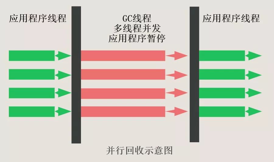 –垃圾回收时, 应用程序仍会暂停, 只不过由于是多线程回收, 在多核CPU上,回收效率会高于串行回收器, 反之在单核CPU, 效率会不如串行回收器