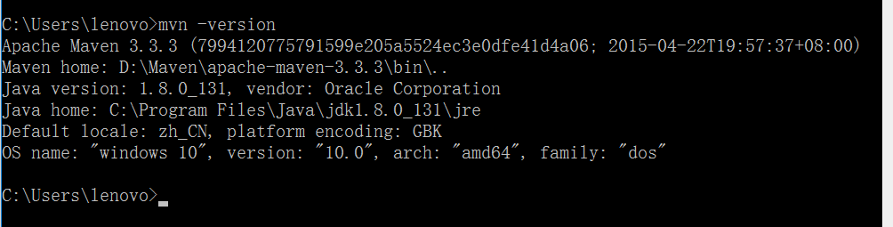 为了测试安装成功,打开命令提示符,输入 mvn -version (maven所有命令都是mvn)