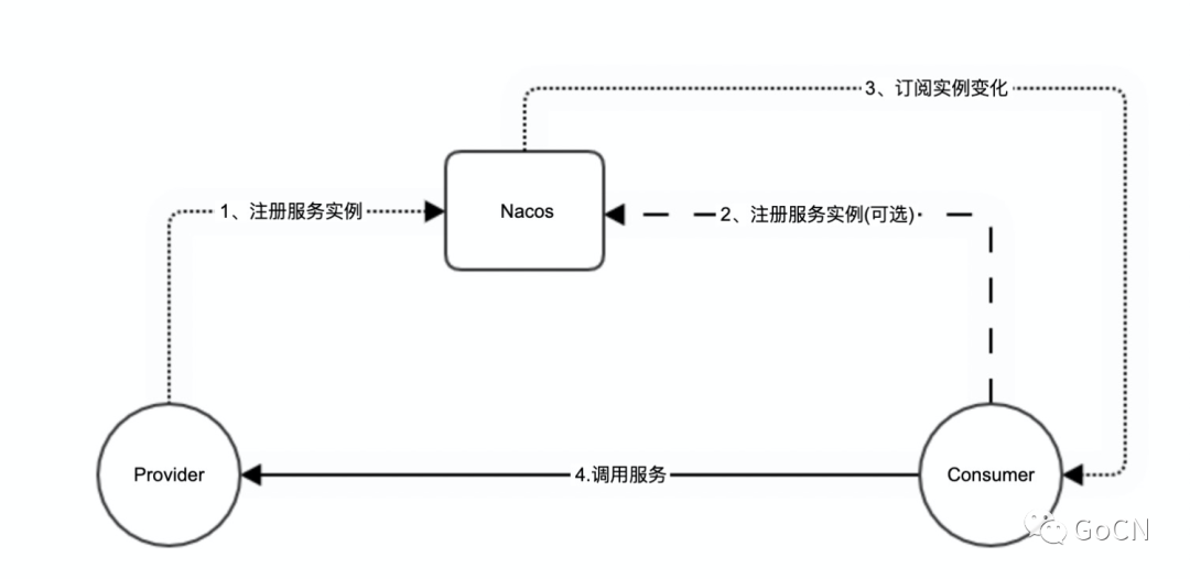 从架构中,我们可以看到,与接口级别的服务注册发现不同的是,Dubbo-go的provider启动后会调用Nacos-go-sdk的RegisterInstance接口向Nacos注册服务实例,注册的服务名即为应用名称,而不是接口名称。Conusmer启动后则会调用Subscribe接口订阅该应用的服务实例变化,并对的实例发起服务调用。