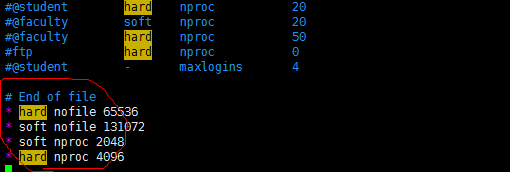 增加如下字段(主要是hard nofile字段要修改到至少65536):