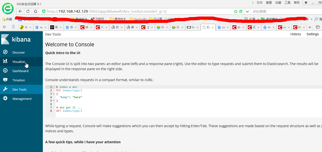登录Kibana页面:端口号为配置文件中端口号,默认是5601,此处修改为5602了
