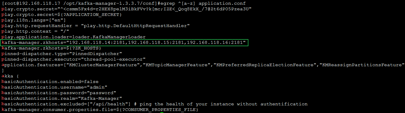 zookeeper.connect=192.168.118.14:2181,192.168.118.15:2181,192.168.118.16:2181 #设置zookeeper的连接端口