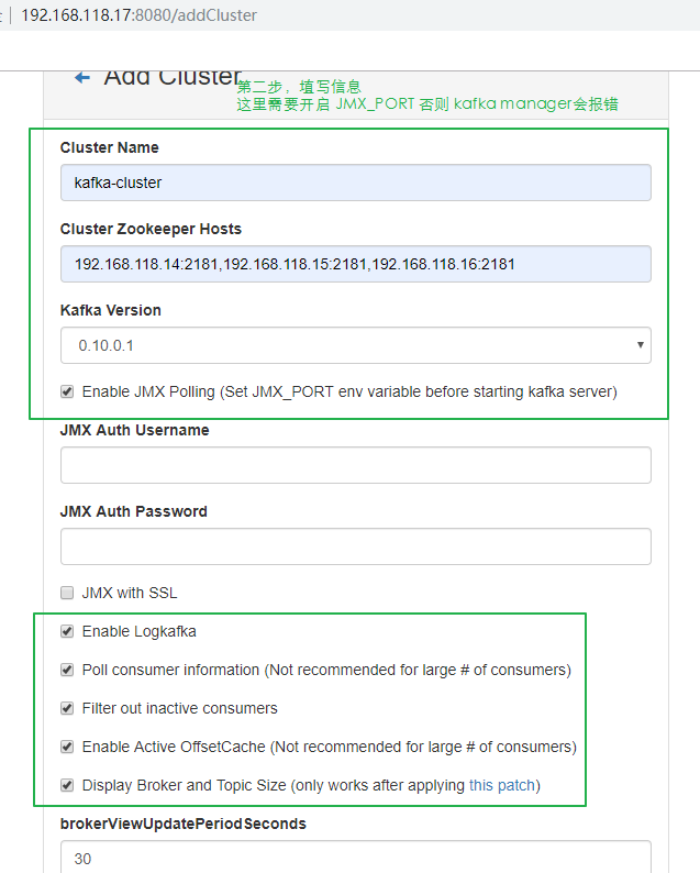 点击保存后,如果kafka 没有开启 JMX_PORT 会出现如下 kafka manager 日志报错信息:
