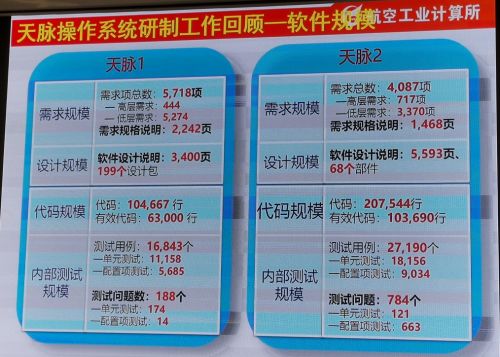 天脉1和天脉2的软件规模如下图所示:
