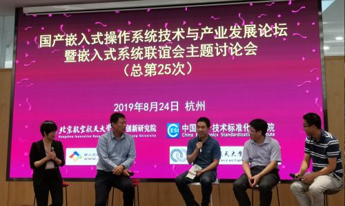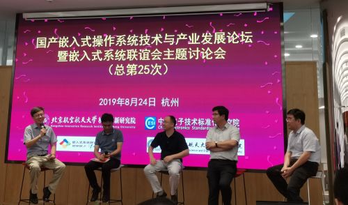 2019年8月24日,“国产嵌入式操作系统技术与产业发展论坛暨嵌入式系统联谊会主题讨论会(总第25次)”在北航杭州创新研究院召开。RT-Thread物联网操作系统技术总监——朱天龙应邀出席,并以“物联网操作系统架构和平台化研究”为主题进行了演讲。现场气氛热烈,RT-Thread作为合作和支持芯片厂商最多、社区最活跃、开发者最多、组件最丰富、应用领域最广的IoT OS,获得了各界参会人士的高度赞赏,与会嘉宾也表示十分关注RT-Thread的发展。