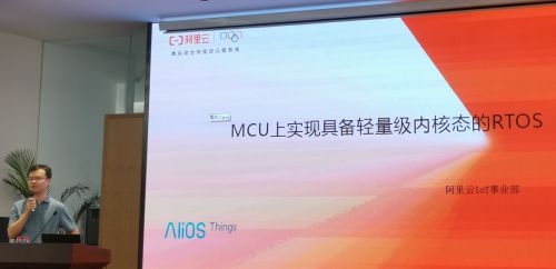演讲的最后,来自阿里巴巴IoT事业部的技术专家黄震带来了“MCU上实现具备轻量级内核态的RTOS”,重点介绍了阿里自主研发的轻量级物联网操作系统——AliOS Things。