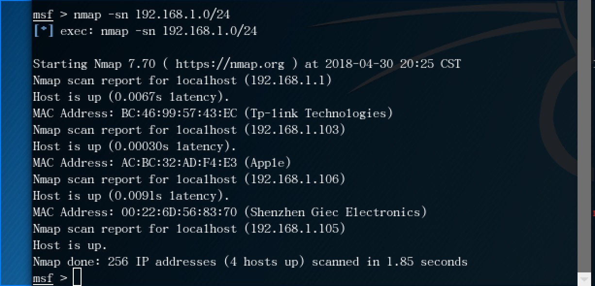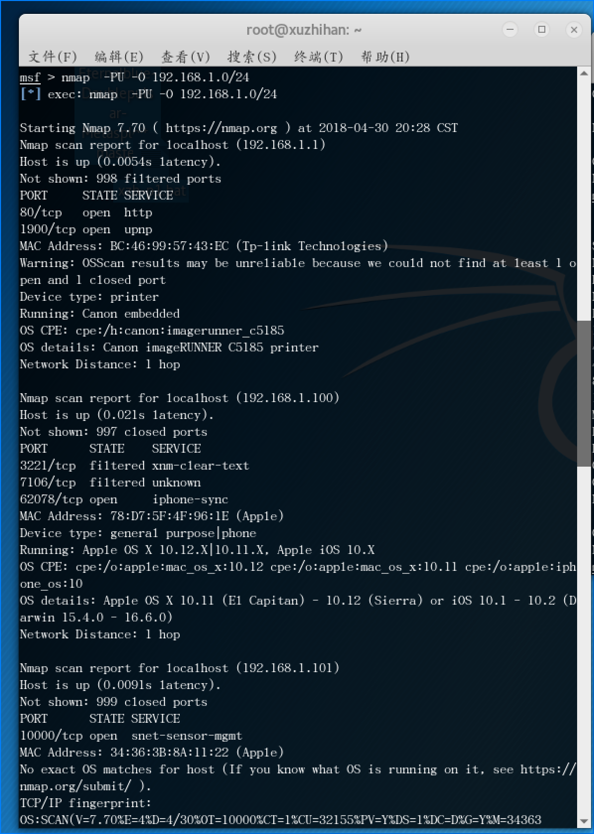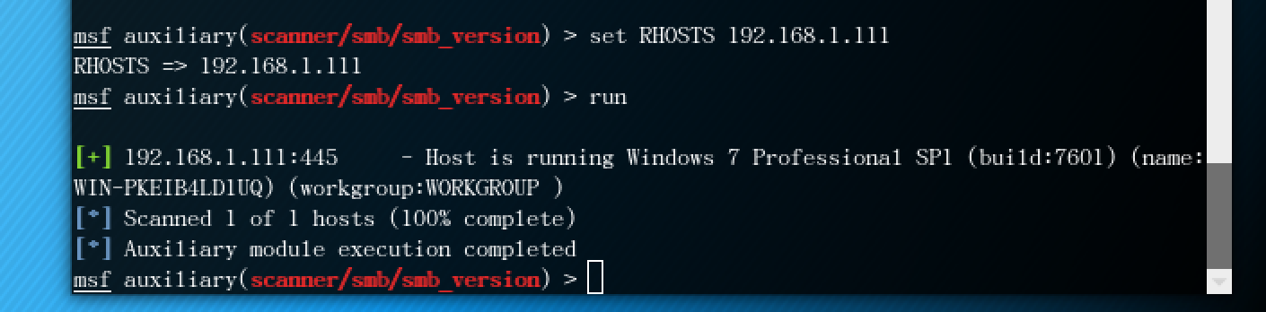 4、扫描一下有没有上次实验使用的MS17_010,遗憾的是并没有;