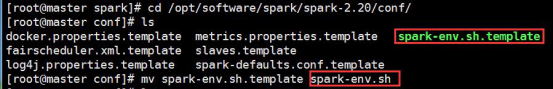 4、进入spark-2.20\conf文件夹,修改spark-env.sh.template为spark-env.sh