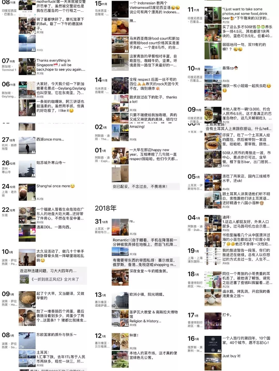 他从大学时期开始穷游,从厦门到北京坐了18小时的硬座,从厦门到哈尔滨站了30几个小时,经常性坐红眼航班,睡机场。他出去玩喜欢暴走,所以没人敢跟他一起出去,在迪拜,从青旅走了10公里到机场,在萨拉热窝,从机场走到青旅,走了近20公司,还一度迷路,真的牛逼!他现在已经去过东南亚、中东、东欧的14个国家,今年计划去美洲和西欧的几个国家。
