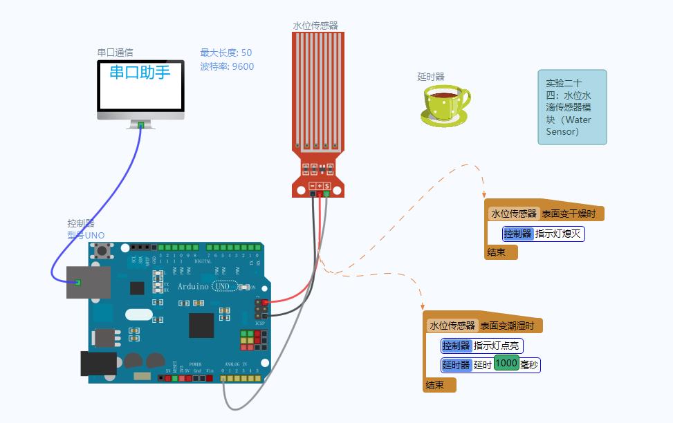 实验二十四:水位水滴传感器模块(Water Sensor)