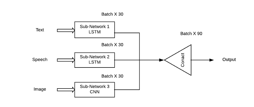 我们采用子网络的加权组合,以便每个输入模态可以对输出预测有一个学习贡献(Theta)。