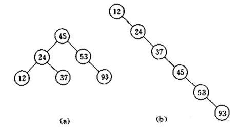 但是当二叉树的数据分布是这个样子时那它和链表的区别就很小了。