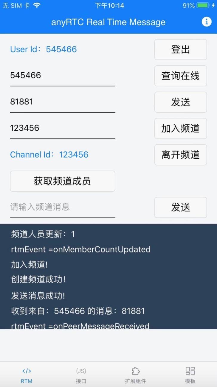 uni-app跨平台实时消息SDK插件,包含点对点消息、频道消息、呼叫邀请等功能。在同一频道下,用户可以接收和发送消息。从下方的状态栏里面可以到频道内的状态变化,包括人员的更新和消息的更新。
