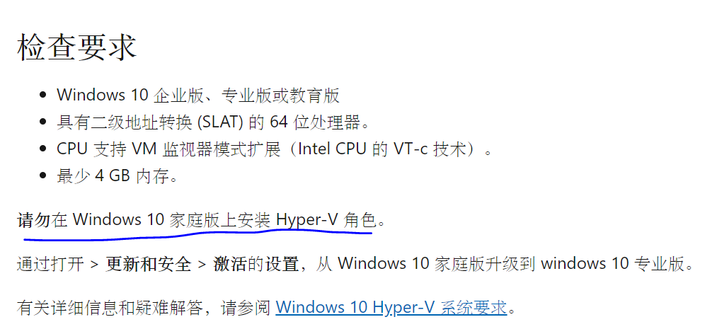 但是,很有可能是因为你使用的Windows10家庭版未安装hyper-v,还看到微软官网很狗地写着这句话