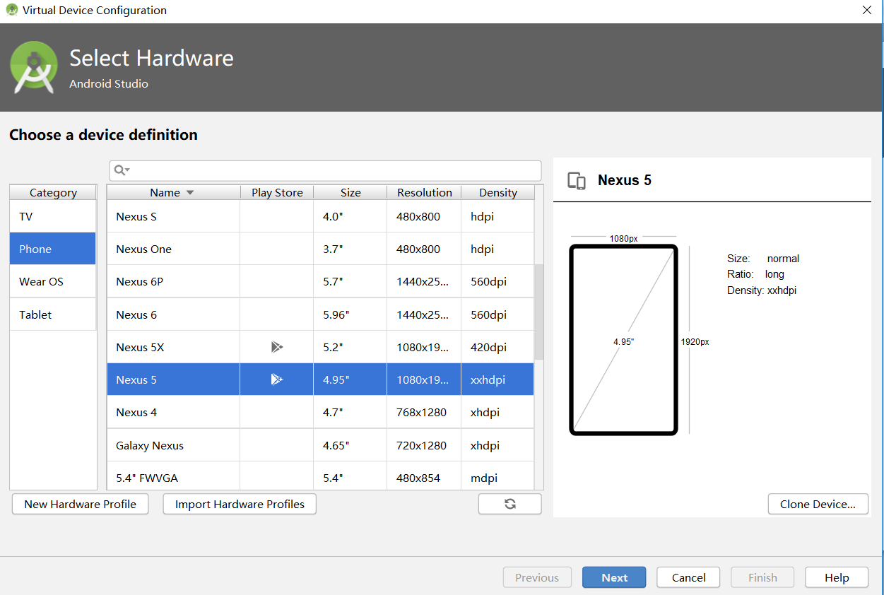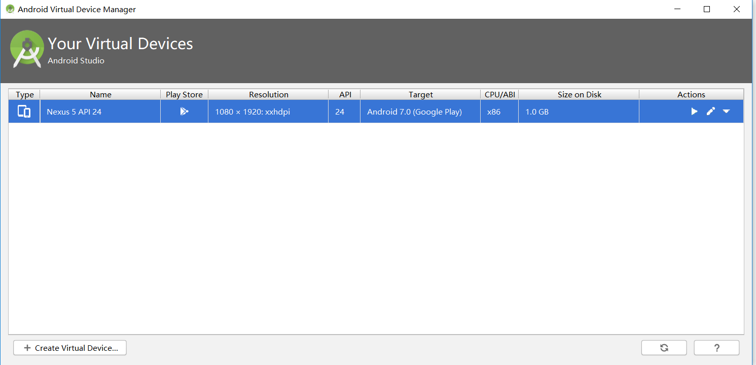 2.实验过程: (1)下载安装Android Studio步骤请参考:http://www.cnblogs.com/rocedu/p/6824965.html; (2)配置和启动模拟器; ①启动虚拟机: