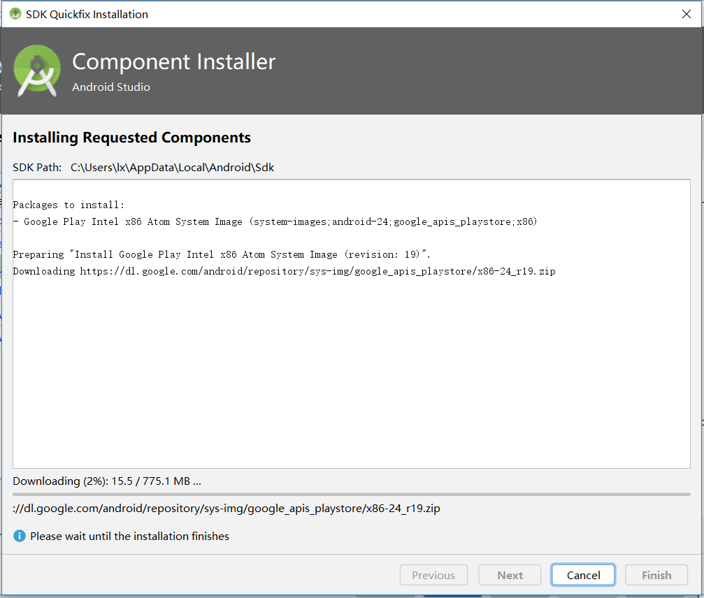 注:如果之前没有下载SDK,它会弹出对话框提示你继续下载!