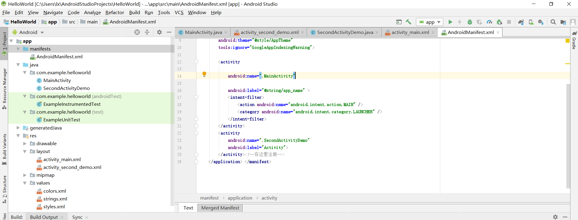 (4)在app下的manifests下的AndroidMainfest.xml注册