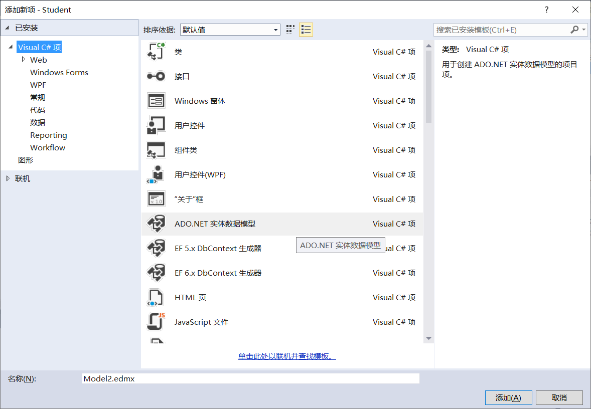 刚开始看老师 用VS新建一个“ADO.NET 实体数据模型”