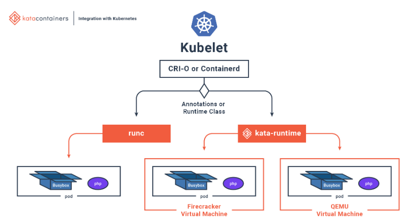 k8s 为pods创建服务的传统方法是采用docker创建容器,由容器提供pods服务,但现在可以通过kata container创建VM,在VM中再创建pods服务,更安全。pods是一个或多个container。