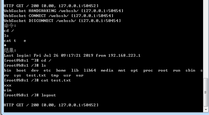 - xterm.js 在浏览器端模拟 shell 终端, 监听用户输入通过 websocket 将用户输入的内容上传到 django