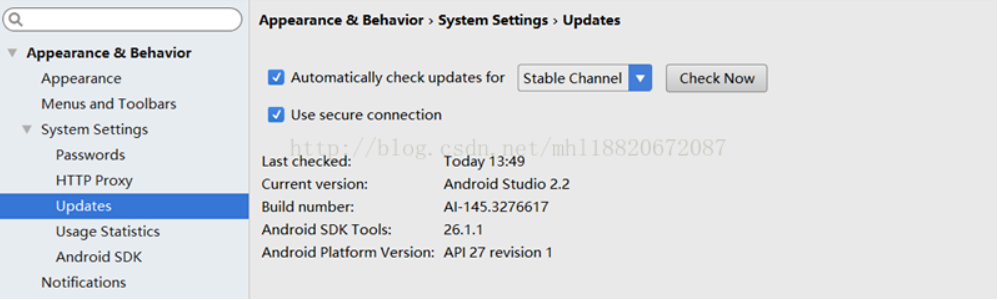 既然是版本问题,那就的先去了解自己的电脑安装的SDK工具版本,点开SDK Manager图标,然后选中Updates就可以看到了